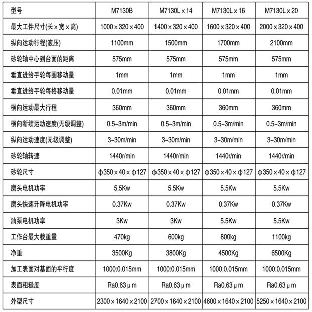 此平面磨床以砂輪周邊或側(cè)面磨削工件的平面,工件可以固定在工作臺(tái)上,或吸牢在電磁吸盤(pán)上,其材質(zhì)可以是鋼、鑄鐵、石墨、或有色金屬。機(jī)床工作臺(tái)的左右和磨頭的前后運(yùn)動(dòng)都是用液壓驅(qū)動(dòng),無(wú)極調(diào)速。磨頭的前后運(yùn)動(dòng)也可手動(dòng)操作。磨頭的垂直方向除手動(dòng)進(jìn)刀外還配有快速升降機(jī)構(gòu),減輕勞動(dòng)強(qiáng)度提高效率。